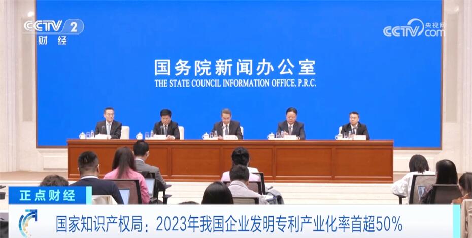 記者4月24日從國際知識產(chǎn)權(quán)局了解到,2023年,我國企業(yè)發(fā)明專利產(chǎn)業(yè)化率首次超過50%,來看報道。