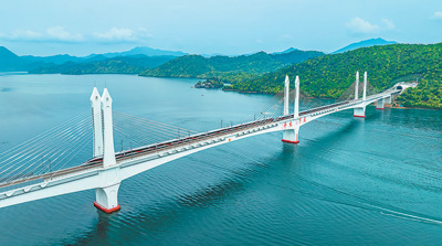 圖為4月26日,復(fù)興號(hào)智能動(dòng)車(chē)組列車(chē)駛過(guò)池黃高鐵太平湖特大橋。王 磊攝(人民視覺(jué))
