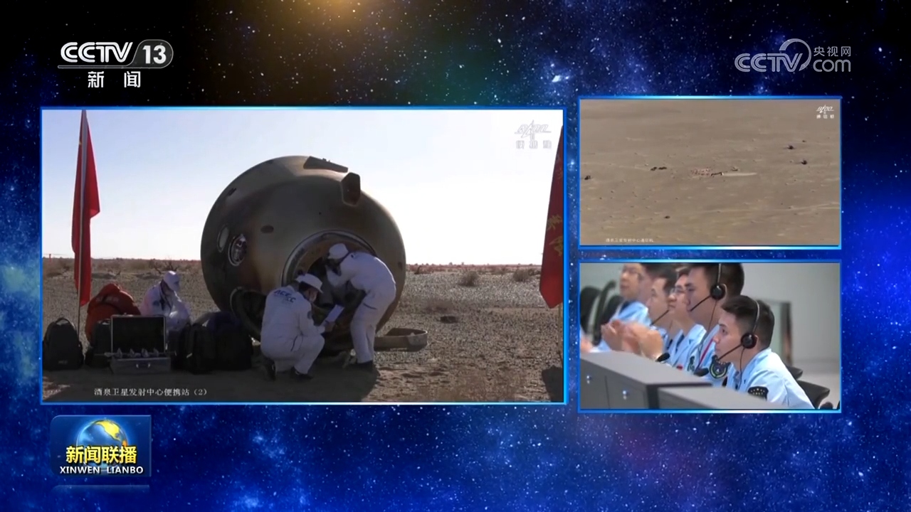 16時(shí)56分,北京航天飛行控制中心通過地面測控站發(fā)出返回指令,神舟十七號載人飛船軌道艙與返回艙成功分離。之后,飛船返回制動(dòng)發(fā)動(dòng)機(jī)點(diǎn)火,推進(jìn)艙與返回艙分離,返回艙成功著陸,擔(dān)負(fù)搜救回收任務(wù)的搜救分隊(duì)及時(shí)發(fā)現(xiàn)目標(biāo)并抵達(dá)著陸現(xiàn)場。返回艙艙門打開后,醫(yī)監(jiān)醫(yī)保人員確認(rèn)航天員身體健康。