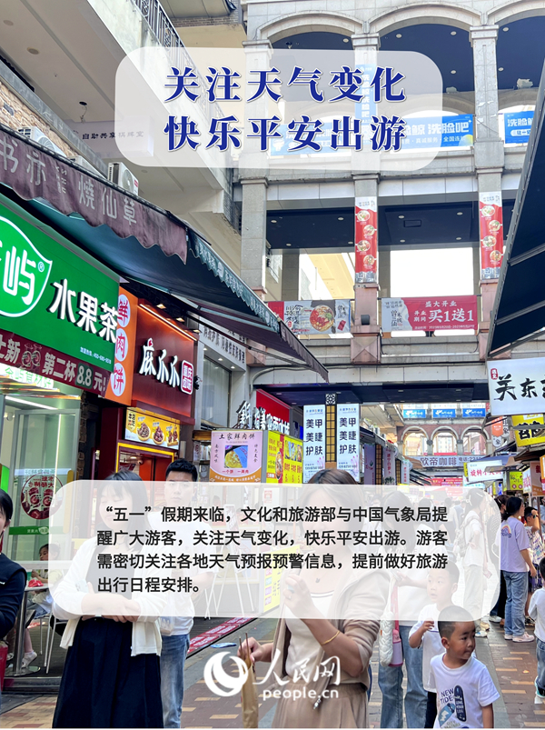 "五一"假日期間,江南、華南、西南等地降水強(qiáng),強(qiáng)對(duì)流天氣多發(fā),對(duì)戶外旅游活動(dòng)影響較大,雷暴大風(fēng)等強(qiáng)對(duì)流天氣對(duì)山區(qū)、水上等旅游活動(dòng)項(xiàng)目會(huì)造成不利影響,請(qǐng)密切關(guān)注當(dāng)?shù)貧庀蟛块T預(yù)報(bào)預(yù)警信息,提前做好防范措施。
