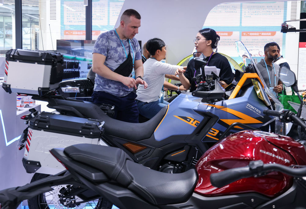 2024年4月15日,采購商在第135屆廣交會上了解摩托車產(chǎn)品。新華社記者 劉大偉 攝