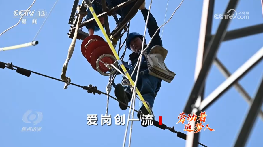 周紅亮:“在塔上特別耗費(fèi)體力,和地面完全不一樣,危險(xiǎn)程度也非常高。在鐵塔上作業(yè)只有一個姿勢,一天下來腿硌得直接就抽筋了。”