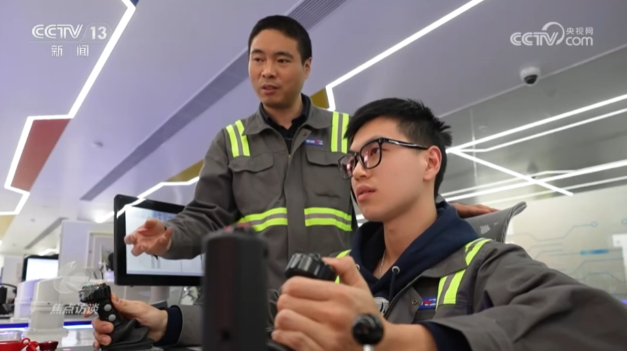 寧波舟山港穿山港區(qū)橋吊班大班長竺士杰:“攝像頭現(xiàn)場攝錄到我們看到是有時間差的,這個對傳統(tǒng)司機(jī)轉(zhuǎn)型到遠(yuǎn)控去操作,固有的操作思維的運(yùn)用,等于說是所見非所得?!?/p>