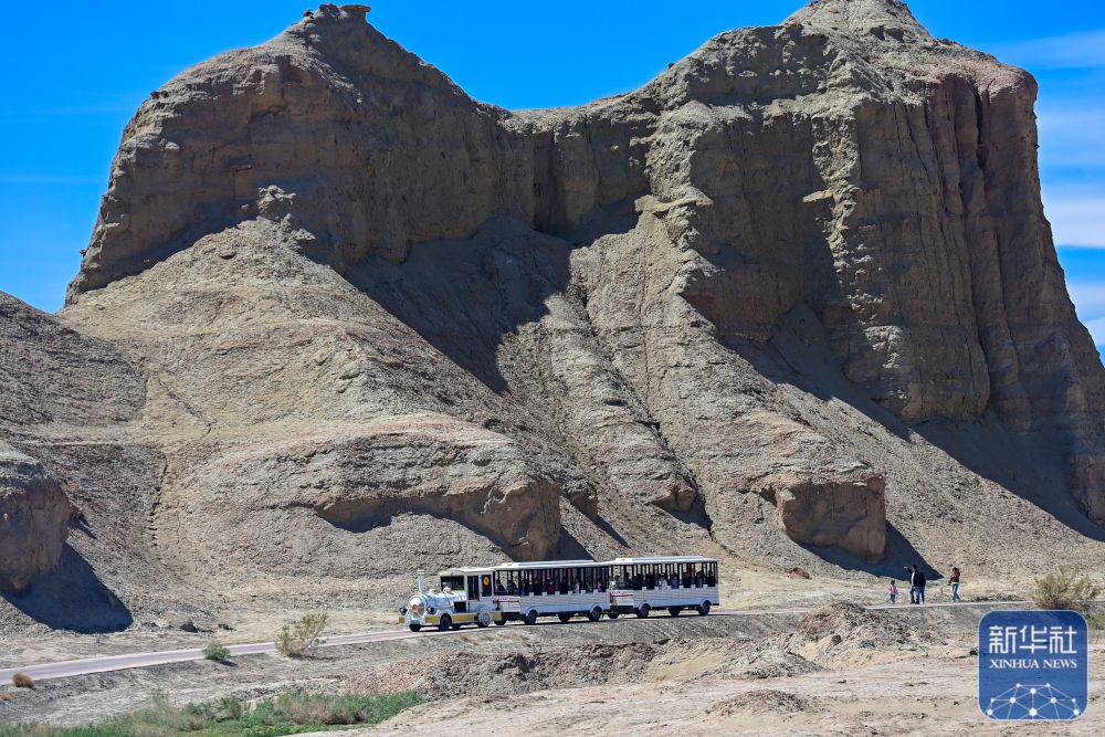 在新疆克拉瑪依市烏爾禾區(qū)世界魔鬼城景區(qū),游客乘坐觀光車游覽(5月2日攝)。