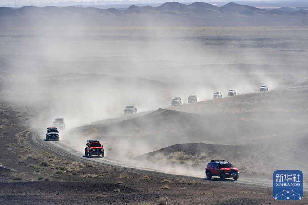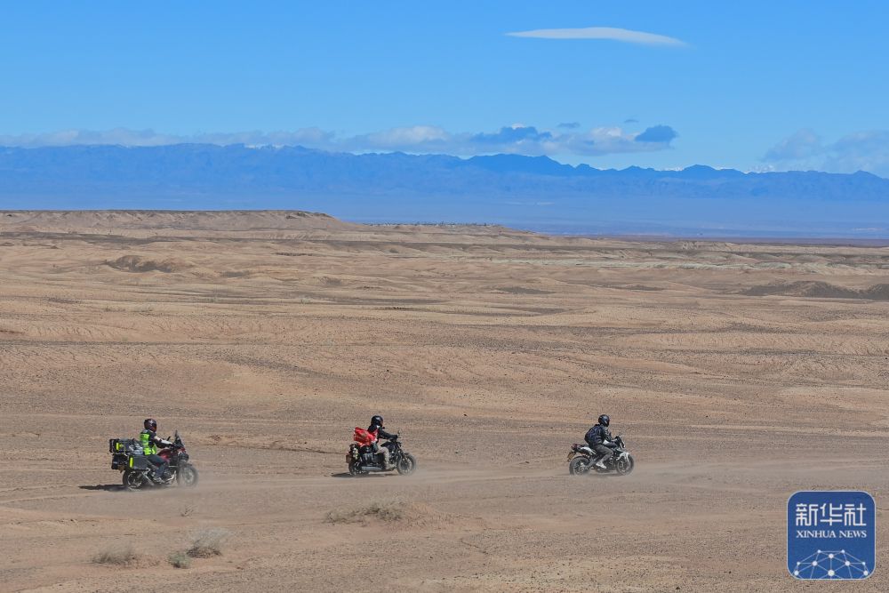 在新疆克拉瑪依市烏爾禾區(qū),車友在無人區(qū)體驗越野騎行(5月2日攝)。
