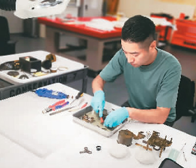 2022年7月正式對(duì)公眾開館的香港故宮文化博物館,還是一個(gè)很“年輕”的博物館,其修復(fù)團(tuán)隊(duì)也比較年輕。“文物的修復(fù)極為深?yuàn)W,不同類別修復(fù)方法也不同,書畫、鐘表、瓷器、金銀器等門類都有不同的專業(yè)知識(shí)和技術(shù)要求。”梁嘉放說。