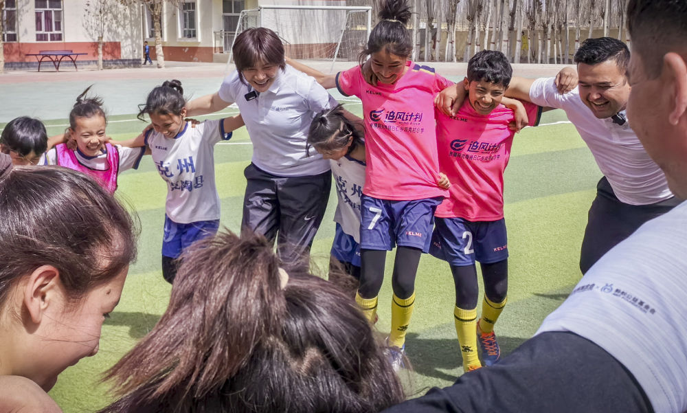 這樣的快樂,在水慶霞指導(dǎo)這次隨著“追風(fēng)計劃”來到且克村小學(xué)的時候,姐姐和妹妹都感受到了。水指導(dǎo)看了她們的比賽,還見證了妹妹的兩個進(jìn)球,又帶著且克村小學(xué)的女足隊員們上了一堂邊路配合的訓(xùn)練課。