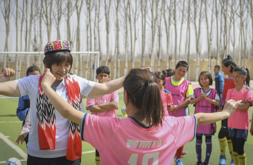 “她們說,‘教練我們太激動了,今天太開心了!’然后我就不停地給她們拍照?!卑瑺栁鞫』貞浀?,“小隊員們看完這場比賽后,思想就改變了?;貋硪院?,自己也特別想成為職業(yè)足球運動員,姐姐(賽麗瑪)每次都說,要像王霜姐姐一樣,成為國家隊的成員。所以她們現(xiàn)在特別刻苦地訓(xùn)練,我們也是嚴(yán)格地訓(xùn)練她們?!?/p>