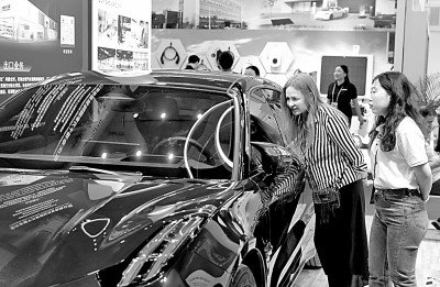 采購商在第135屆廣交會(huì)上參觀新能源汽車。新華社發(fā)