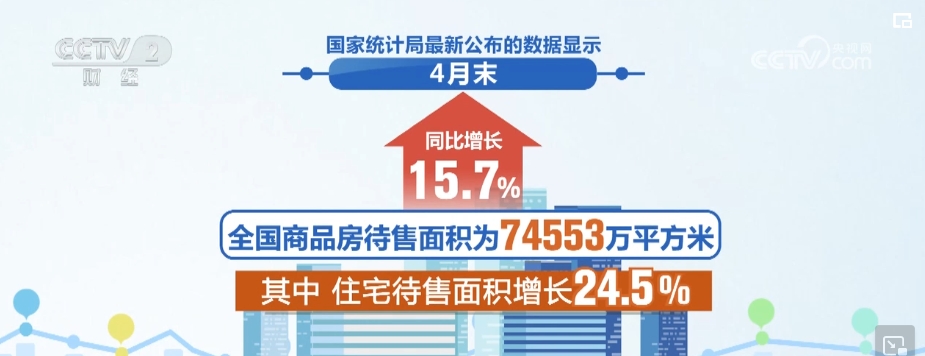 國(guó)家統(tǒng)計(jì)局最新公布的數(shù)據(jù)顯示,4月末,全國(guó)商品房待售面積為74553萬(wàn)平方米,同比增長(zhǎng)15.7%。其中,住宅待售面積增長(zhǎng)24.5%。