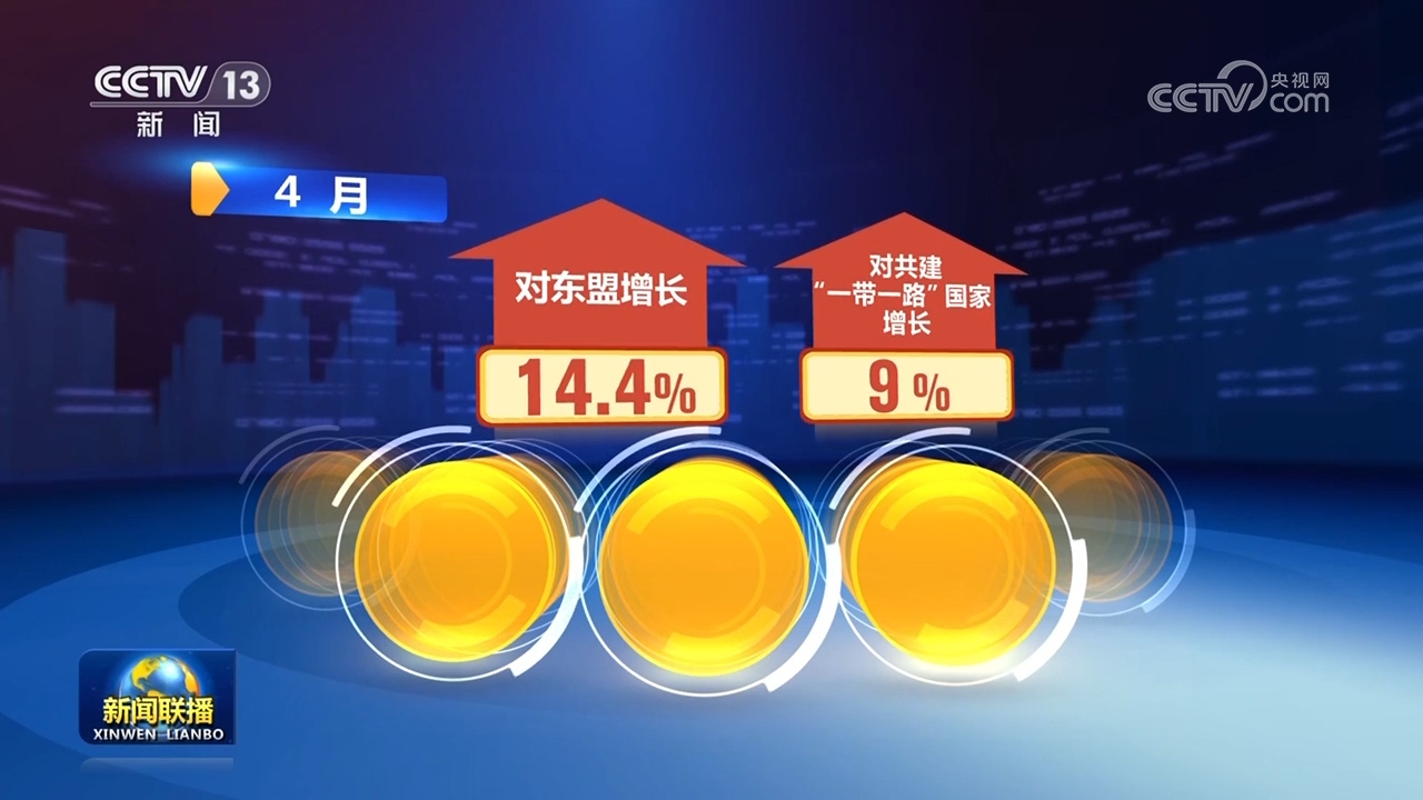 從市場看,我國對傳統(tǒng)和新興市場的貿(mào)易都呈現(xiàn)出增長態(tài)勢。4月,受庫存消化、需求恢復(fù)等因素帶動(dòng),中國對傳統(tǒng)市場進(jìn)出口由降轉(zhuǎn)增,其中,對歐盟增長3.3%,對美國增長6.2%。與此同時(shí),對新興市場進(jìn)出口繼續(xù)保持較高增速,對東盟、共建“一帶一路”國家分別增長14.4%、9%。