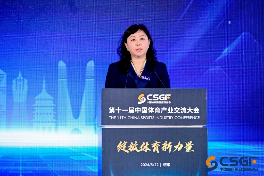 圖為國家體育總局體育經(jīng)濟司司長楊雪鶇發(fā)言。