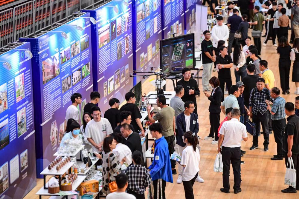 在沈陽市沈陽農業(yè)大學禾豐體育館舉辦的遼寧省高??萍汲晒D化對接大會現(xiàn)場(2023年9月攝)。新華社發(fā)