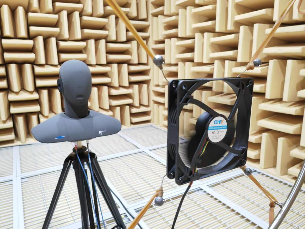 5月19日,晟輝科技實驗室內(nèi),一款風(fēng)機正在接受噪音檢測。新華社記者謝希瑤 攝