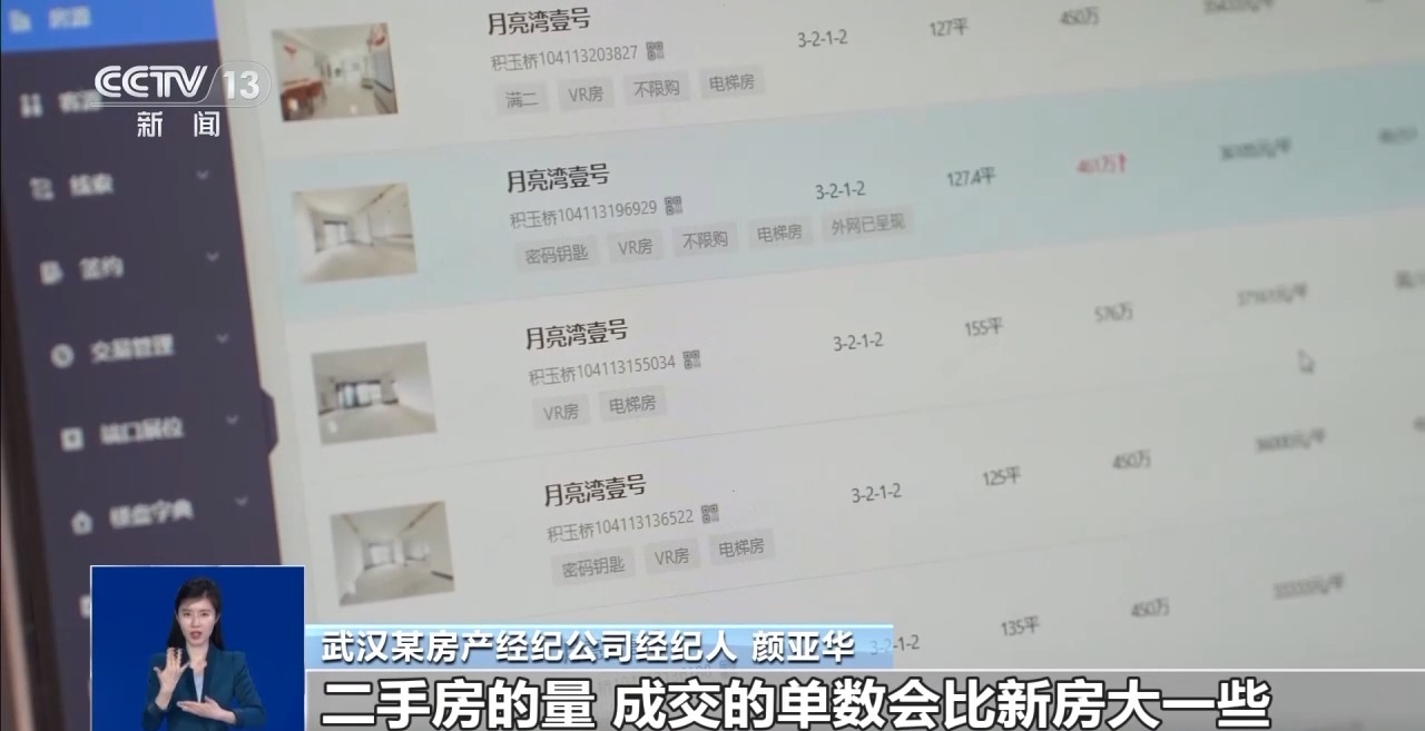 武漢某房產(chǎn)經(jīng)紀(jì)公司經(jīng)紀(jì)人 顏亞華:按成交量來說,二手房成交的單數(shù)會比新房大一些,因?yàn)槎址康膯蝺r可能會更低一點(diǎn)。