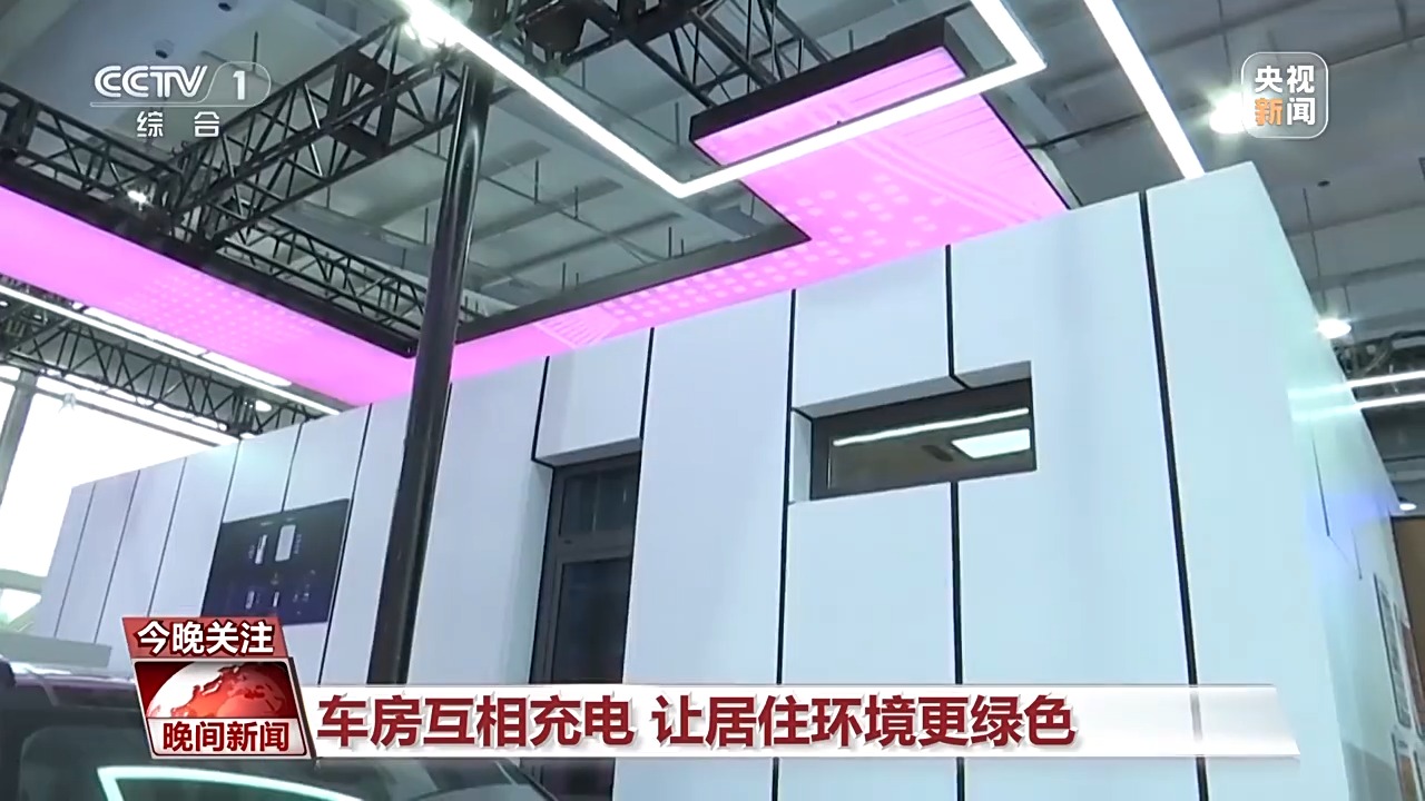 總臺央視記者 張春玲:在我們房子的頂部還有一個神秘的裝備就是新能源電池板,通過新能源電池板對太陽能的收集之后,它可以放在房屋這一側(cè)的儲能箱里,同時,它旁邊還有一個雙向的充電樁,這個充電樁可以給我們的新能源電池汽車進(jìn)行充電,同時房子的能源匱乏的時候,我們的新能源汽車還可以反向的給這個房子放電,實(shí)現(xiàn)了能源循環(huán)利用。