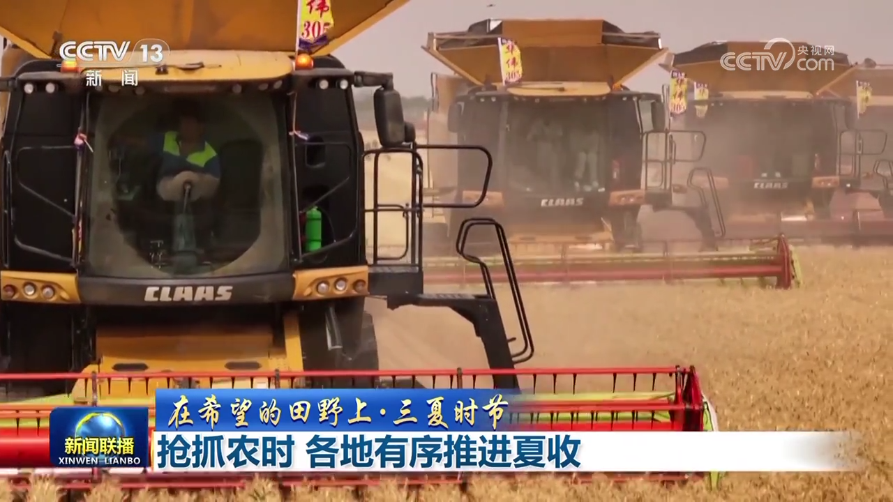 安徽小麥主產(chǎn)區(qū)收獲已過六成,在蒙城,當(dāng)?shù)爻浞掷没ヂ?lián)網(wǎng)、大數(shù)據(jù)、北斗導(dǎo)航等信息化技術(shù),搭建農(nóng)機作業(yè)指揮調(diào)度平臺,可實時查詢農(nóng)機位置、農(nóng)機狀態(tài),隨時予以調(diào)度,機收作業(yè)區(qū)域做到定人、定地、定機械,讓麥?zhǔn)兆鳂I(yè)更高效。山東6000多萬畝小麥陸續(xù)進入收獲期,在濟南長清區(qū),收割機來回穿梭,小麥?zhǔn)崭睢⒚摿?、秸稈粉碎還田一氣呵成,隨后玉米播種機下地,同步進行玉米播種和施肥,實現(xiàn)夏收、夏播無縫銜接。