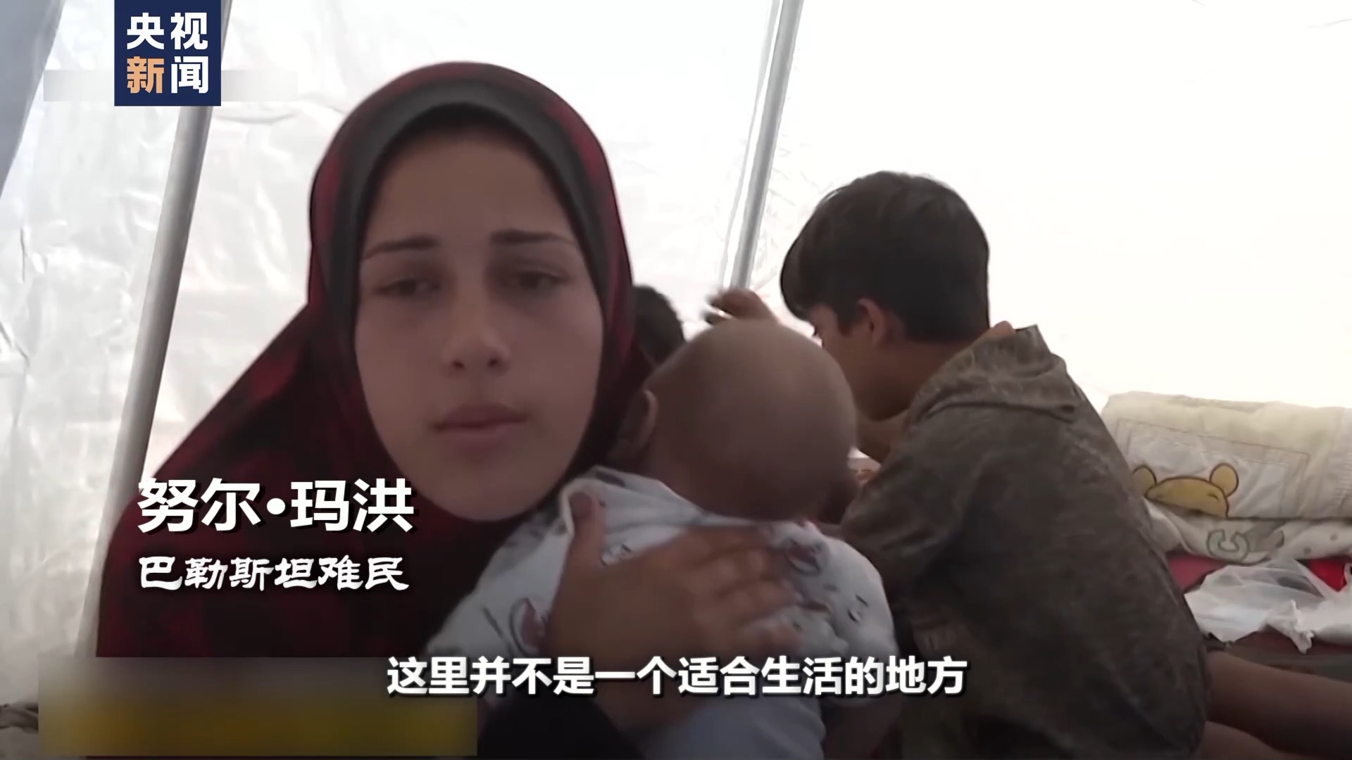 巴勒斯坦難民:我們在附近聽到了轟炸聲,就跑到這個營地來。看到到處都是流離失所的人,有兒童、婦女、青年和老人。眾所周知,這個營地是為難民而建的,而他們幾乎都是從(加沙)北部逃到這里的。