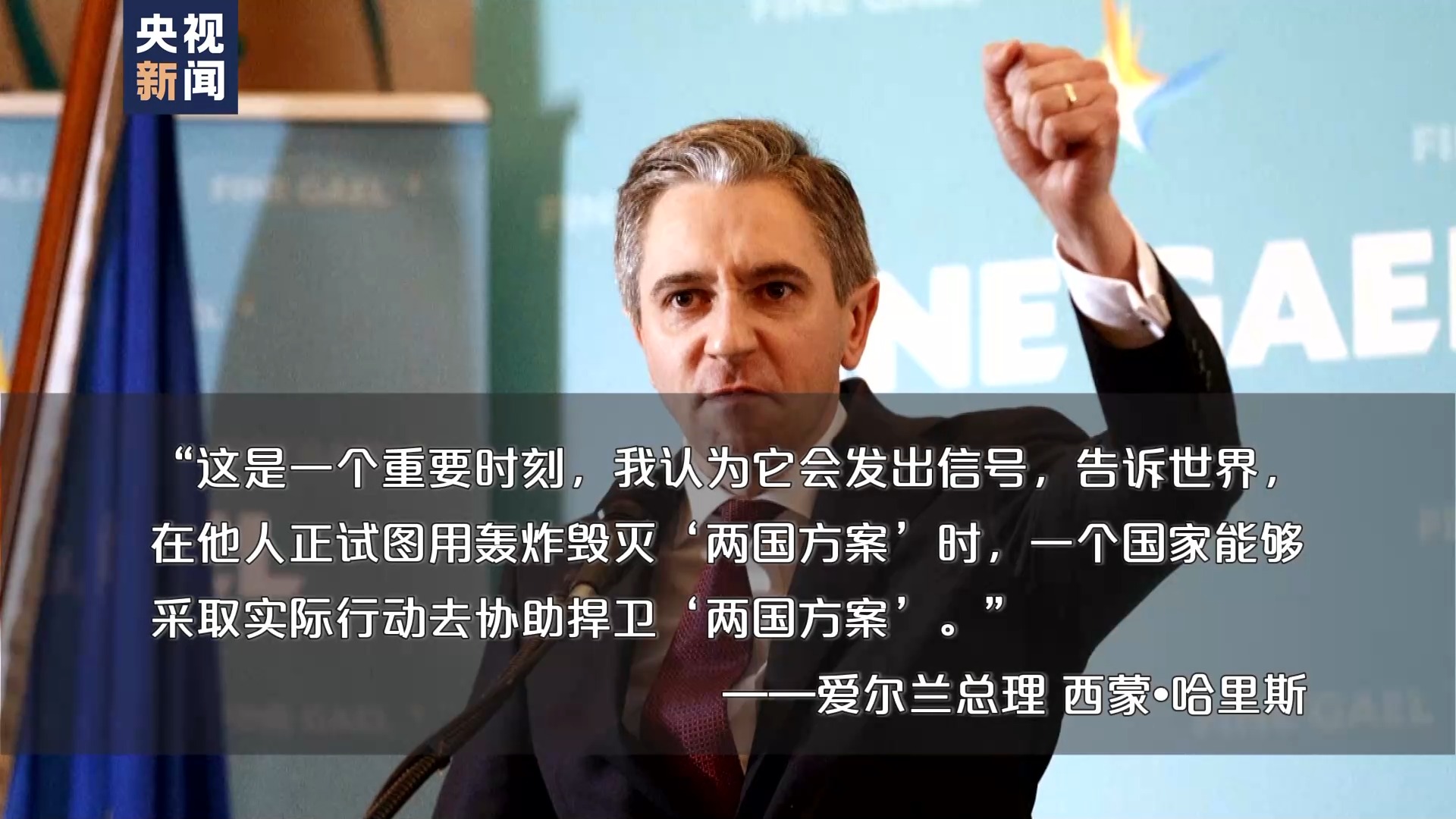 愛爾蘭總理 西蒙·哈里斯:我們說過承認巴勒斯坦國的時刻越來越近了,現(xiàn)在這一時刻終于到了。這對愛爾蘭和巴勒斯坦來說都是歷史性的一天,重要的一天。