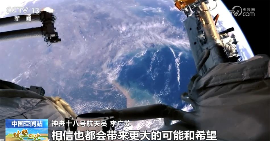 神舟十八號航天員李廣蘇介紹:“我們的航天工作是探索宇宙,同“三北”工程一樣,都是為天地立心,都需要鍥而不舍、久久為功,既要充滿激情,又要充滿科學(xué)精神??梢哉f,“三北”地區(qū)每多一點(diǎn)綠,在浩瀚太空每多探索一步,都充滿艱辛和挑戰(zhàn),而每一分付出和堅(jiān)守,相信也都會(huì)帶來更大的可能和希望。”