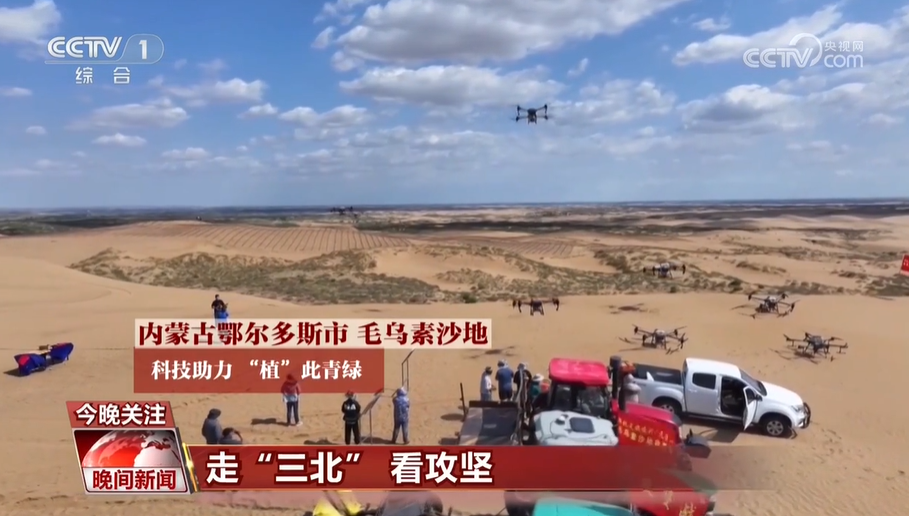 在內(nèi)蒙古毛烏素沙地,無人機飛播、機器人栽種正當(dāng)時,科技助力“植”此青綠。