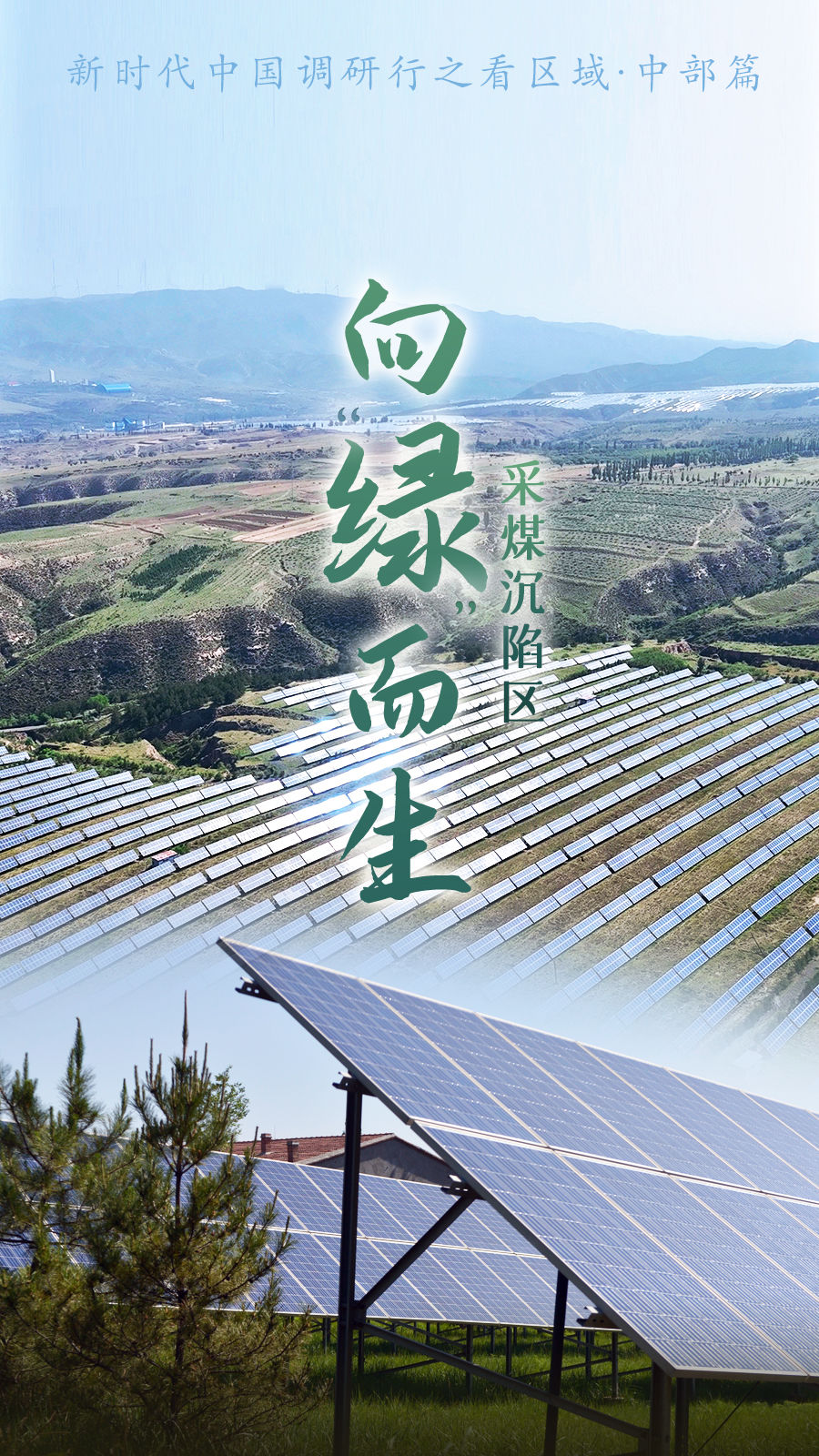 一片4.96萬(wàn)畝的采煤沉陷區(qū)被郁郁蔥蔥的綠色植被所覆蓋,大大小小的山梁上橫亙著一排排的光伏板,蔚為壯觀,它們不斷將綠色能源送入電網(wǎng)體系。