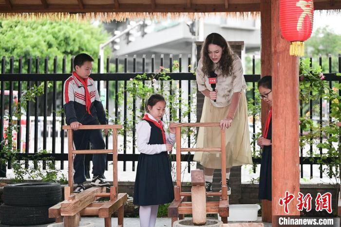 28歲的宋瀟佩來(lái)自波蘭,是重慶大學(xué)的一名留學(xué)生,這是她在中國(guó)度過(guò)的第一個(gè)端午節(jié)。為學(xué)習(xí)端午傳統(tǒng)文化習(xí)俗,宋瀟佩特地穿上中式服裝,走進(jìn)重慶市艾草文化研究指導(dǎo)基地——重慶兩江新區(qū)嘉木小學(xué)校,以艾草為媒,和孩子們一同學(xué)習(xí)“艾+”學(xué)科生活融創(chuàng)教育課程,感受傳統(tǒng)文化在節(jié)日里煥發(fā)的新生機(jī)。