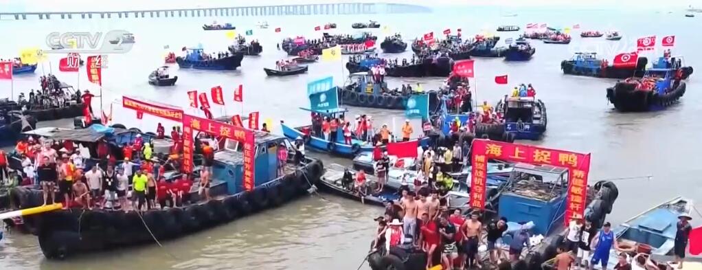 浙江嘉興:“龍舟斗牛賽”精彩上演
