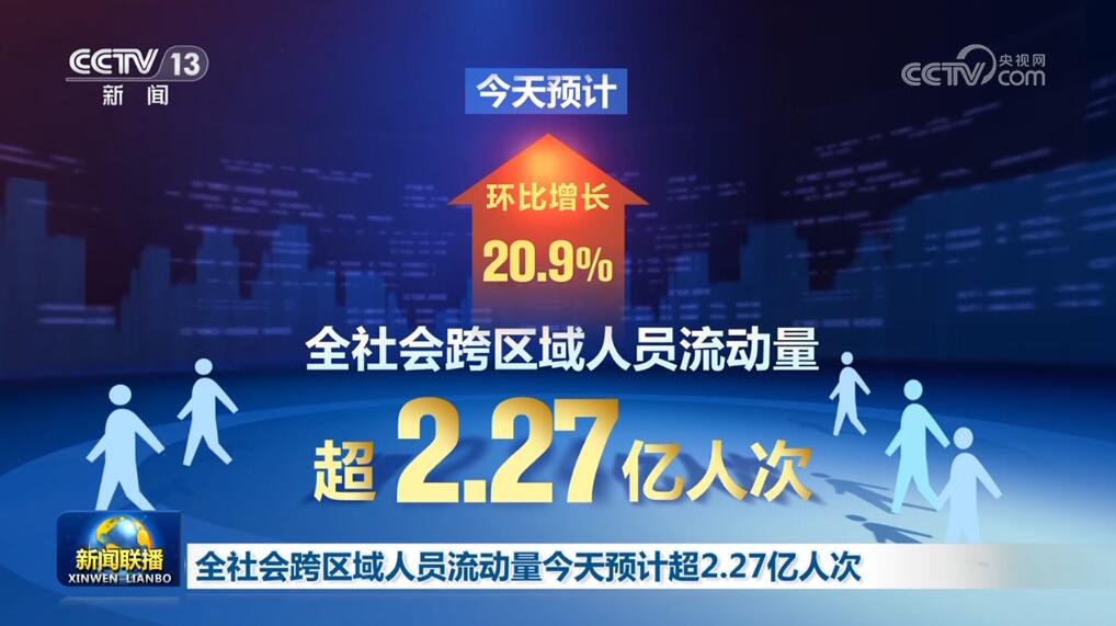 全社會(huì)跨區(qū)域人員流動(dòng)量8日預(yù)計(jì)超2.27億人次