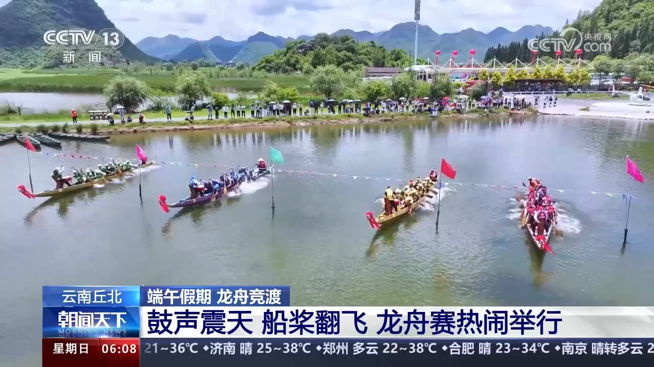 鼓聲震天,船槳翻飛,在云南文山丘北縣舉行的這場(chǎng)龍舟賽,吸引了來(lái)自85支隊(duì)伍的1000多名參賽選手,他們有節(jié)奏地?fù)]動(dòng)船槳,奮力向終點(diǎn)沖刺。水聲、歡呼聲、吶喊聲,不絕于耳。