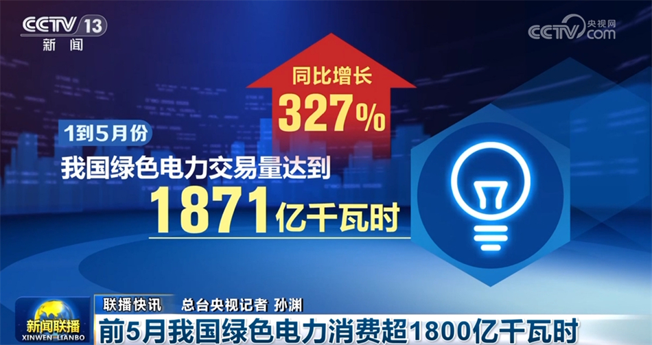 記者6月12日從中國電力企業(yè)聯(lián)合會了解到,1—5月份,我國綠色電力交易規(guī)模快速增長,交易量達到1871億千瓦時,同比增長327%。綠色電力消費重點用戶涵蓋了能源、鋼鐵、互聯(lián)網科技等多個領域,顯示出我國能源綠色低碳轉型不斷加速。