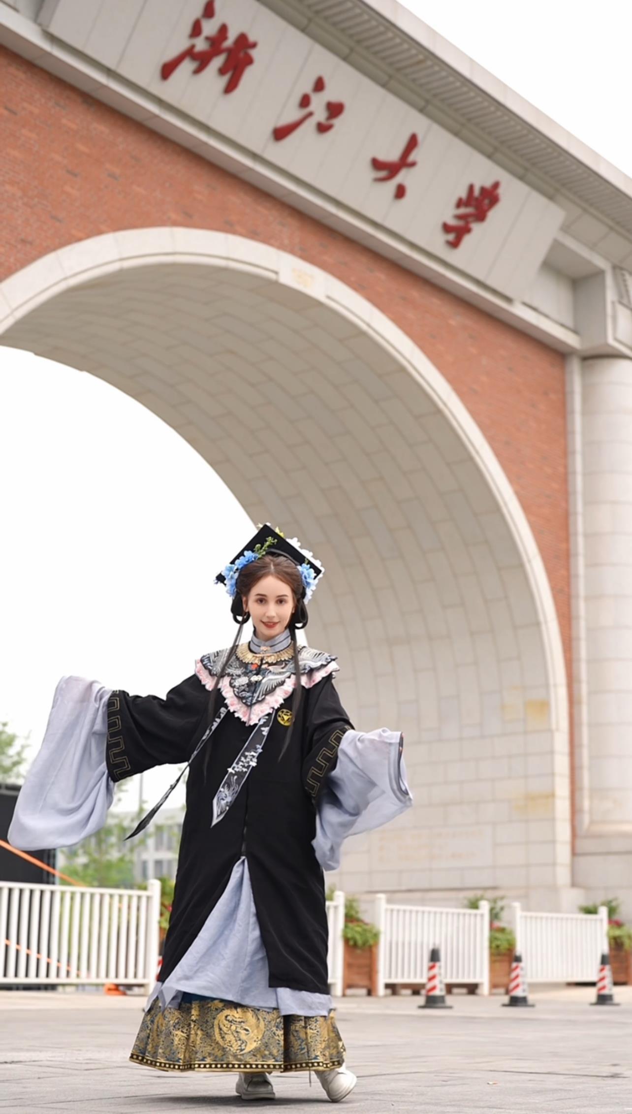 安心冉:所有的評(píng)論都在說很漂亮呀或者很適合你,或者恭喜你畢業(yè)了,我就覺得很感動(dòng)。因?yàn)槲沂亲x元明清文學(xué),能穿明代的衣服畢業(yè),我很開心。我穿的那套學(xué)士服云肩的形狀就是四合如意,蘊(yùn)含了人生順?biāo)斓拿篮米8!P厍暗膱D案是丹鳳朝陽(yáng),它寓意著賢德的人前途光明。我覺得中國(guó)的學(xué)士服比西方的學(xué)士服更有意義。