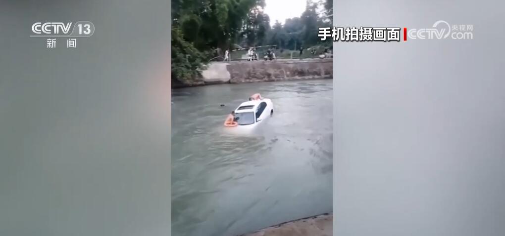 近日,在四川成都的一處河道,一輛轎車意外墜入湍急的河水中,車內有一名男子。危急時刻,附近工作人員和群眾合力展開救援。