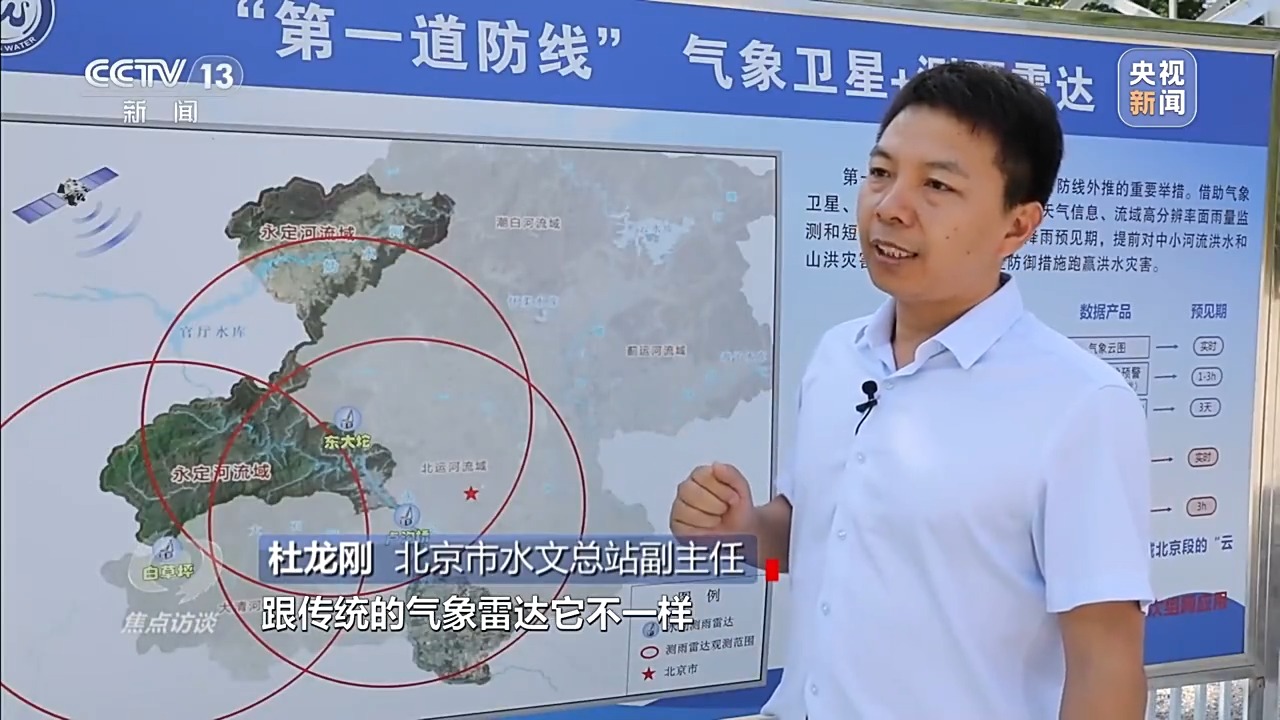 北京市水文總站副主任 杜龍剛:過去傳統(tǒng)北京水務(wù)用的是245個(gè)雨量站,今年,我們通過加密并整合氣象部門和北京市規(guī)劃和自然資源委員會(huì)的雨量站點(diǎn),達(dá)到了1900多個(gè)。