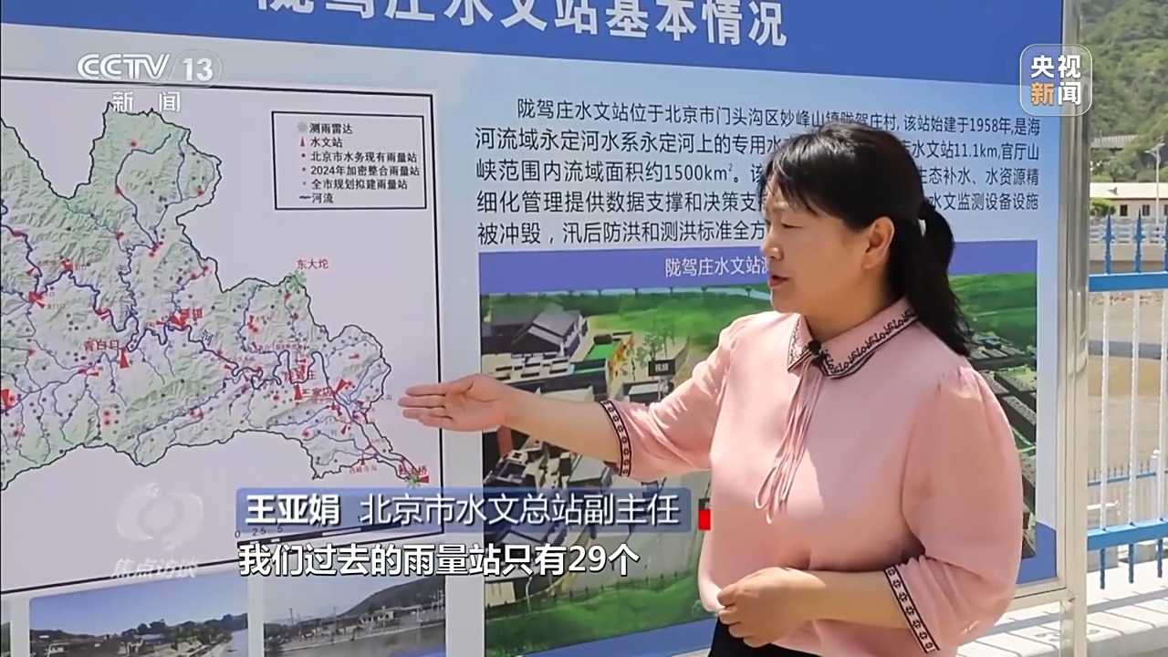 北京市水文總站副主任 王亞娟:過去雨量站只有29個(gè),現(xiàn)在整個(gè)官廳山峽的雨量站達(dá)到256個(gè),還進(jìn)一步規(guī)劃,一共是384個(gè),以后的官廳山峽的站網(wǎng)密度能夠達(dá)到2.5平方公里每站,這樣的話,就能提前做好準(zhǔn)備,為它的下游提供數(shù)據(jù)支持、決策支持。