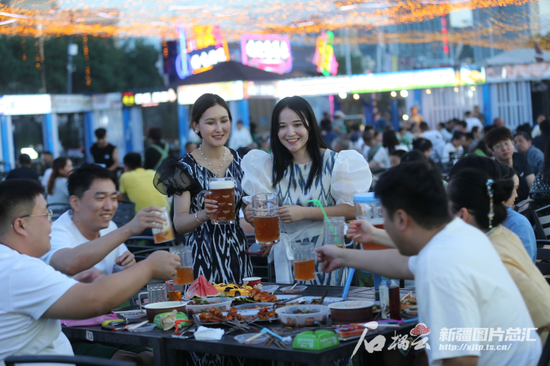 6月18日,市民在烏魯木齊華凌夜市品嘗美食。 石榴云/新疆日報記者 李雄心攝