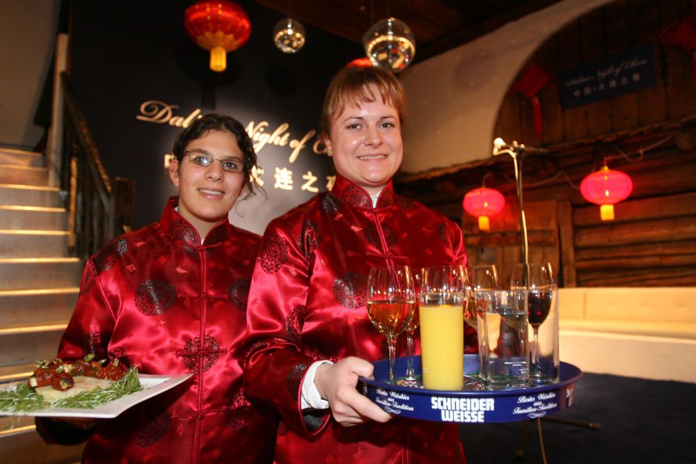 2007年1月25日,在瑞士達(dá)沃斯舉行的“中國大連之夜”上,當(dāng)?shù)嘏?wù)員穿上了中國傳統(tǒng)服裝。
