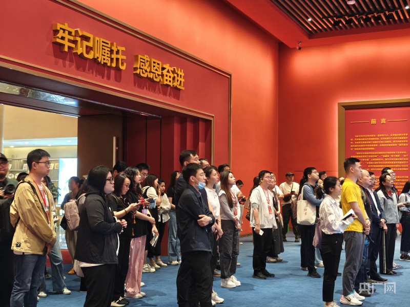 采訪團(tuán)在內(nèi)蒙古展覽館采訪(央廣網(wǎng)記者 劉欣榮 攝)