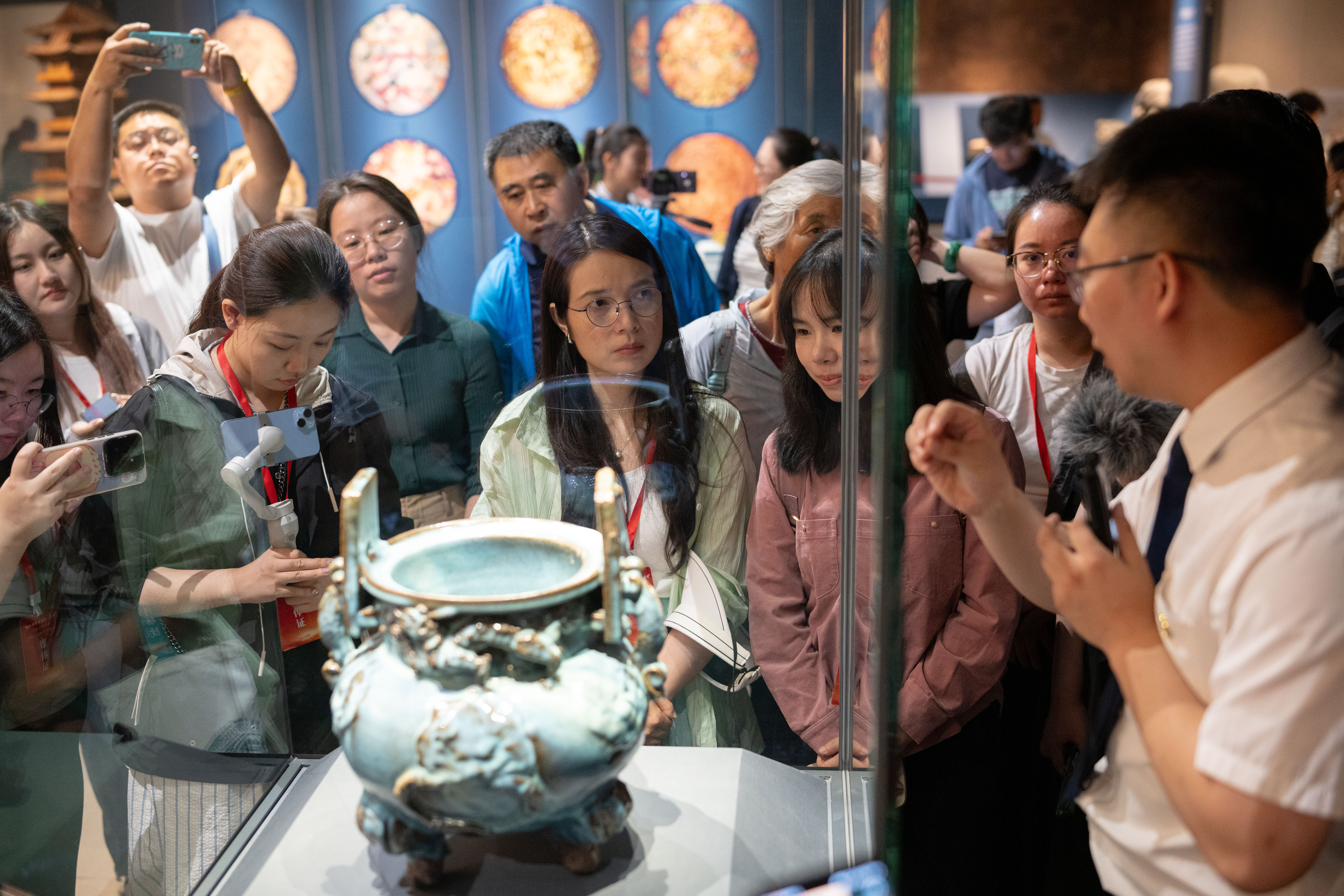 隨后,采訪團(tuán)成員來(lái)到了內(nèi)蒙古博物院,在“大遼契丹”“交融匯聚”等展廳,通過一件件經(jīng)典的藏品,一個(gè)個(gè)精彩的文物故事,了解中華民族悠久歷史和燦爛文化。