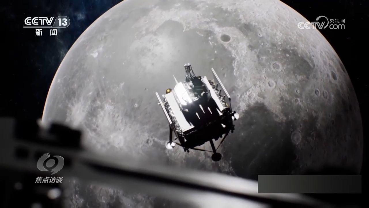 中國航天科技集團馬如奇:“只要發(fā)一條指令,它就把整個任務都給連貫起來了,比如觸月、采樣,然后到放樣,整個過程中只需要一條指令把它全給連起來就全部執(zhí)行了,這樣效率提高了?!?/p>