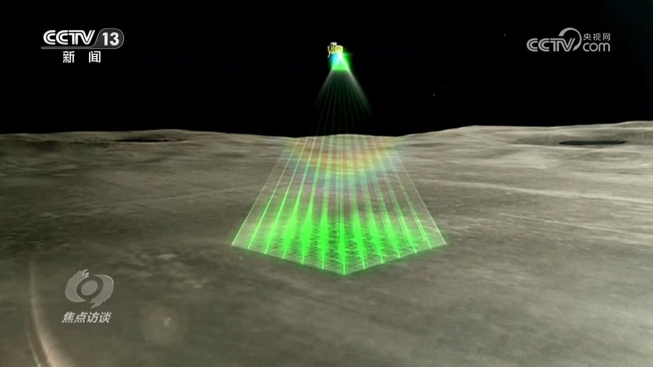 中國航天科技集團關軼峰:“在懸停的時候成像和障礙識別,然后進行規(guī)避,相當于分兩部分,先眼睛確認,看一眼什么地方比較平坦,記住那個地方,然后把那個地方傳到腦子里,知道那是平坦的再移過去,在平坦區(qū)域上方再往下降?!?/p>