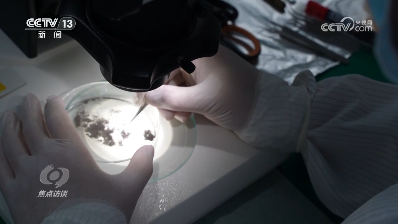 科研團隊拿到月壤后的第一步是樣本制備,挑選工作要在顯微鏡下進行,手部任何一點多余的抖動都會導致顆粒無法被有效挑選,后續(xù)研究也就無從談起。