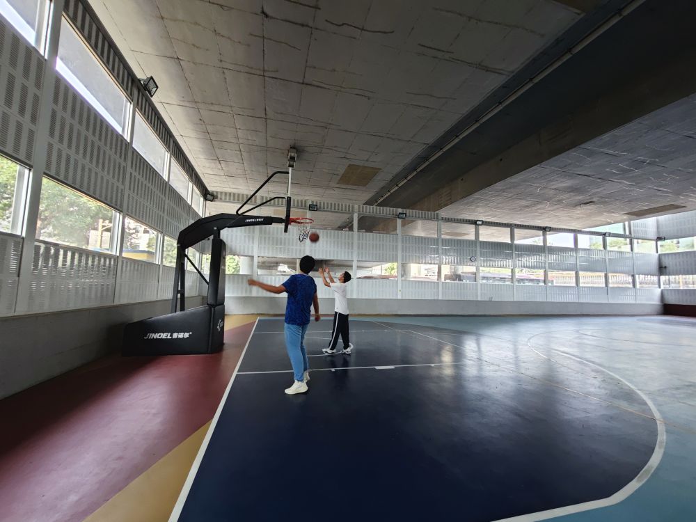 中學生在北京西城區(qū)天寧寺橋下空間籃球場運動。 新華社記者陳旭 攝