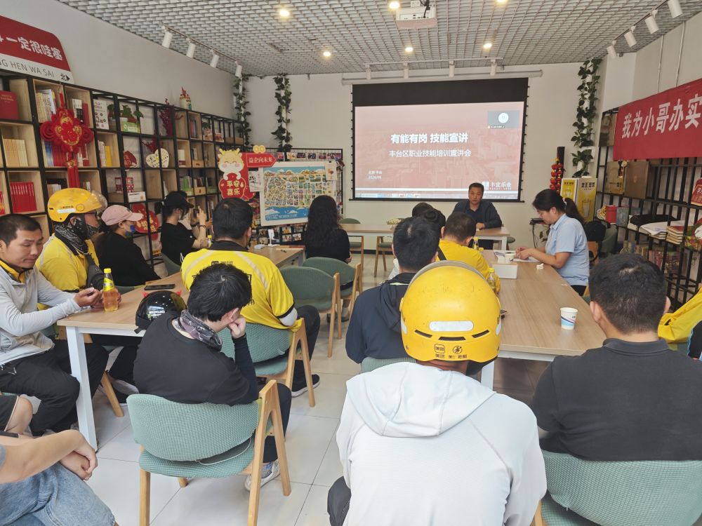 面向外賣員的職業(yè)技能培訓會在北京中關村豐臺園內(nèi)的務工人員之家開講。新華社記者陳旭 攝