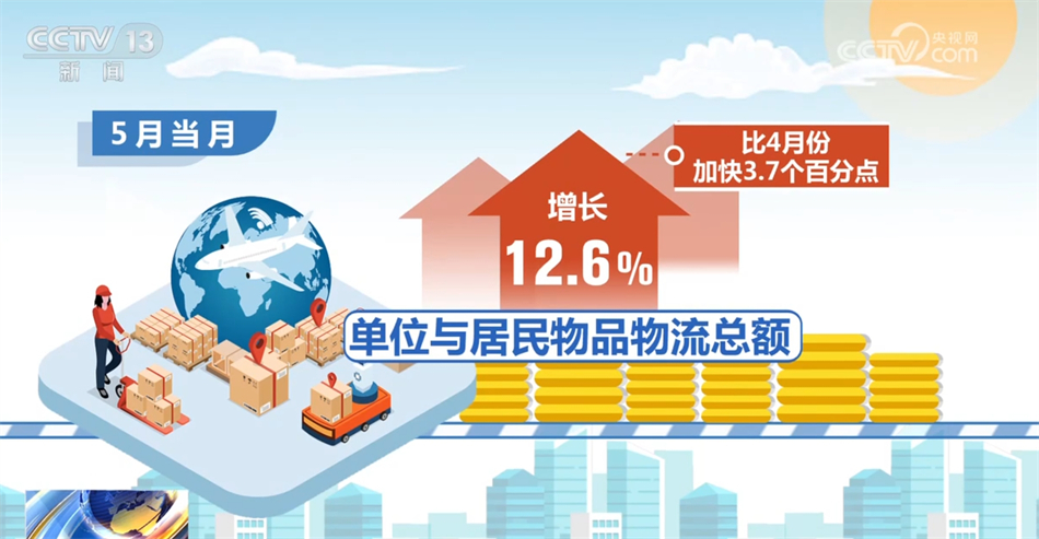另外,民生消費(fèi)領(lǐng)域物流需求增速有所加快。1—5月份,單位與居民物品物流總額同比增長(zhǎng)11.4%,增速比1—4月份提高0.4個(gè)百分點(diǎn)。特別是5月份以來(lái),在假期效應(yīng)、電商促銷(xiāo)以及消費(fèi)品以舊換新政策等因素帶動(dòng)下,與民生消費(fèi)相關(guān)的物流需求回升明顯,5月當(dāng)月單位與居民物品物流總額增長(zhǎng)12.6%,比4月份加快3.7個(gè)百分點(diǎn)。