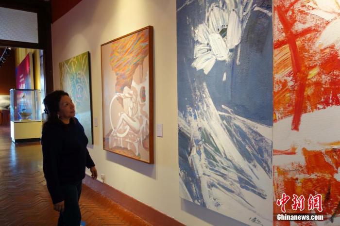 資料圖:當?shù)貢r間2016年11月18日,利馬,一名秘魯女觀眾觀看APEC“人與自然”藝術展。11月16日,為期23天的“感知中國走進秘魯——APEC‘人與自然’藝術展”在秘魯國家考古人類學歷史博物館舉辦。 中新社記者 莫成雄 攝