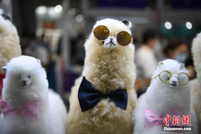 資料圖:2021年5月7日,首屆中國國際消費品博覽會在海南省??谑姓介_展,秘魯羊駝毛產品品牌Warmpaca攜各種羊駝萌寵玩偶亮相消博會。 中新社記者 崔楠 攝