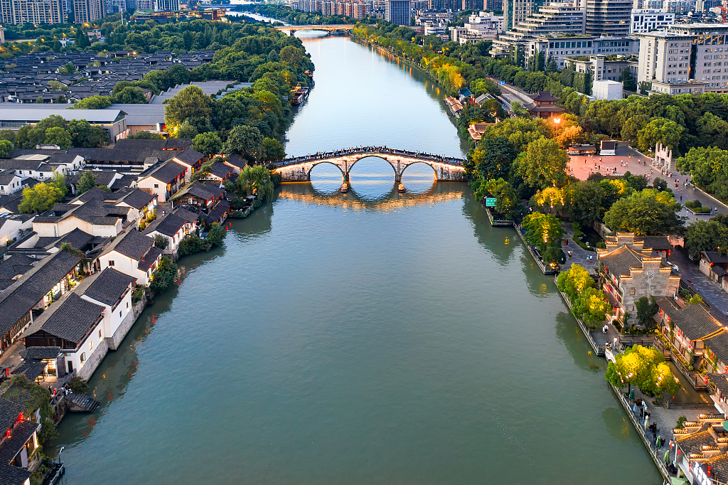 它由京杭大運(yùn)河、隋唐大運(yùn)河、浙東運(yùn)河組成,溝通起黃河、海河、淮河、長(zhǎng)江、錢塘江五大水系,織就了四通八達(dá)的水網(wǎng),造福著沿岸一代又一代的百姓。