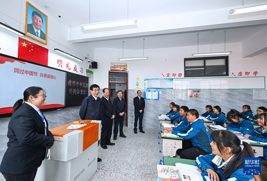 7月1日至3日,中共中央政治局常委、全國(guó)政協(xié)主席王滬寧在四川甘孜、阿壩調(diào)研。這是7月3日王滬寧在阿壩縣中學(xué)了解開展愛國(guó)主義教育和民族團(tuán)結(jié)進(jìn)步教育情況。新華社記者 饒愛民 攝