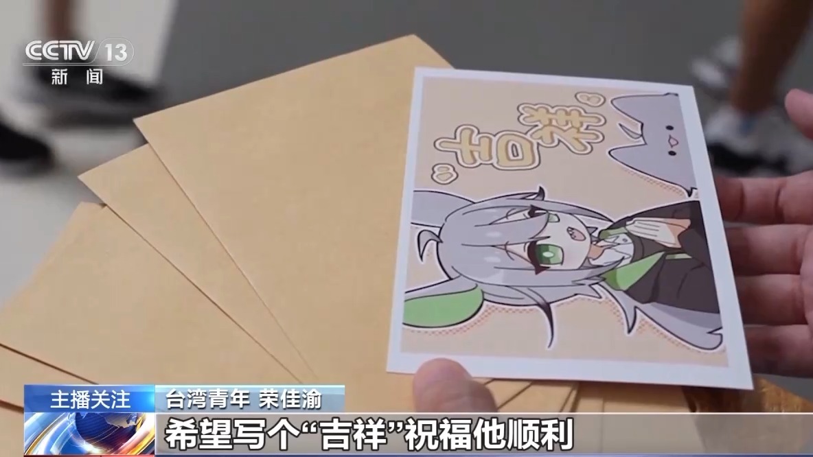 臺灣青年 榮佳渝:他跟我在介紹一些瓷器之類的,可以源源不斷在那邊講,我就覺得好厲害,當然也會希望繼續(xù)跟他交流,因為卡片是比較有心意的東西,我就想自己手畫交給對方,寫個“吉祥”祝福他順利。